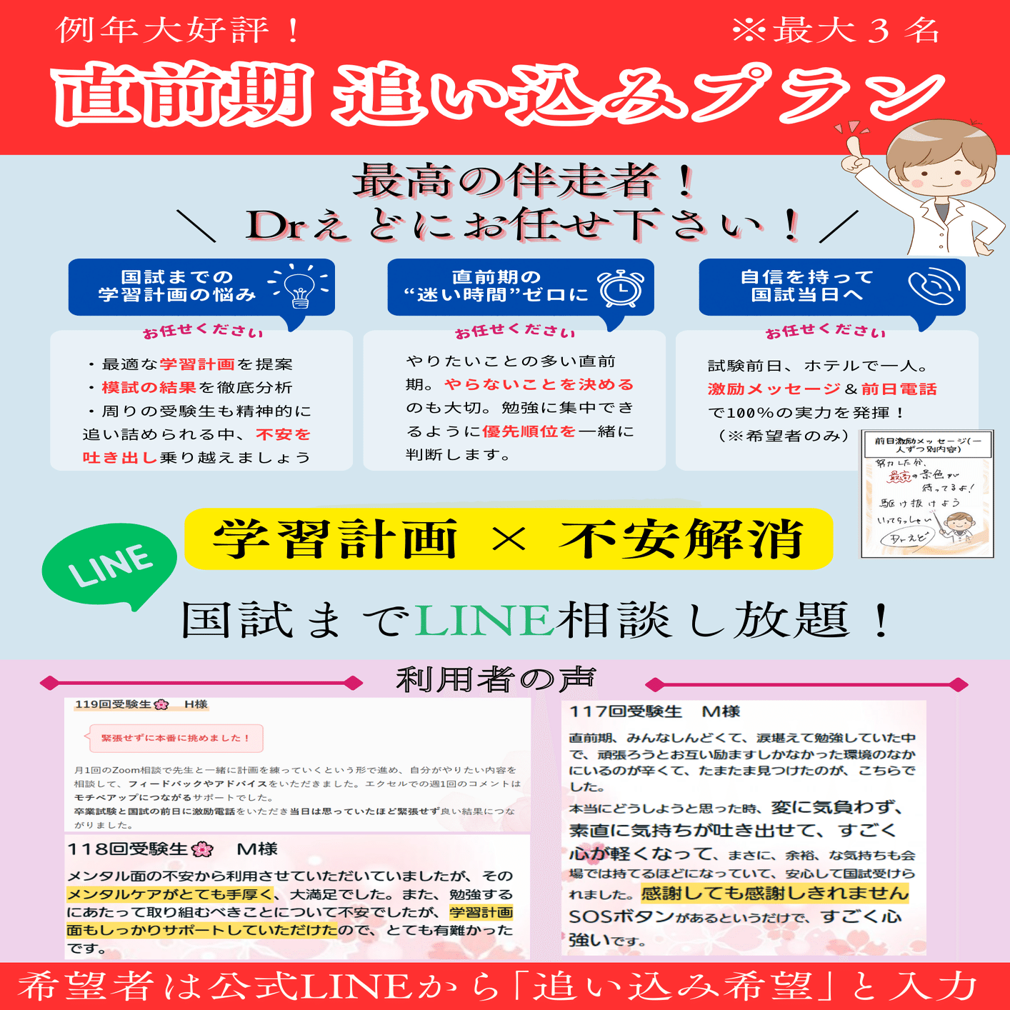 サマライズ、国試無双、ラストメッセージ、総まとめ講座、CCC講座、直前Assist など、各社の直前講義も一気に増えてきます。
